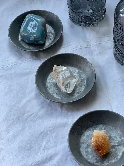 一輪挿しフラワーベース、お花一輪、石一つのセットです(ブリキトレーは含まれていません)。